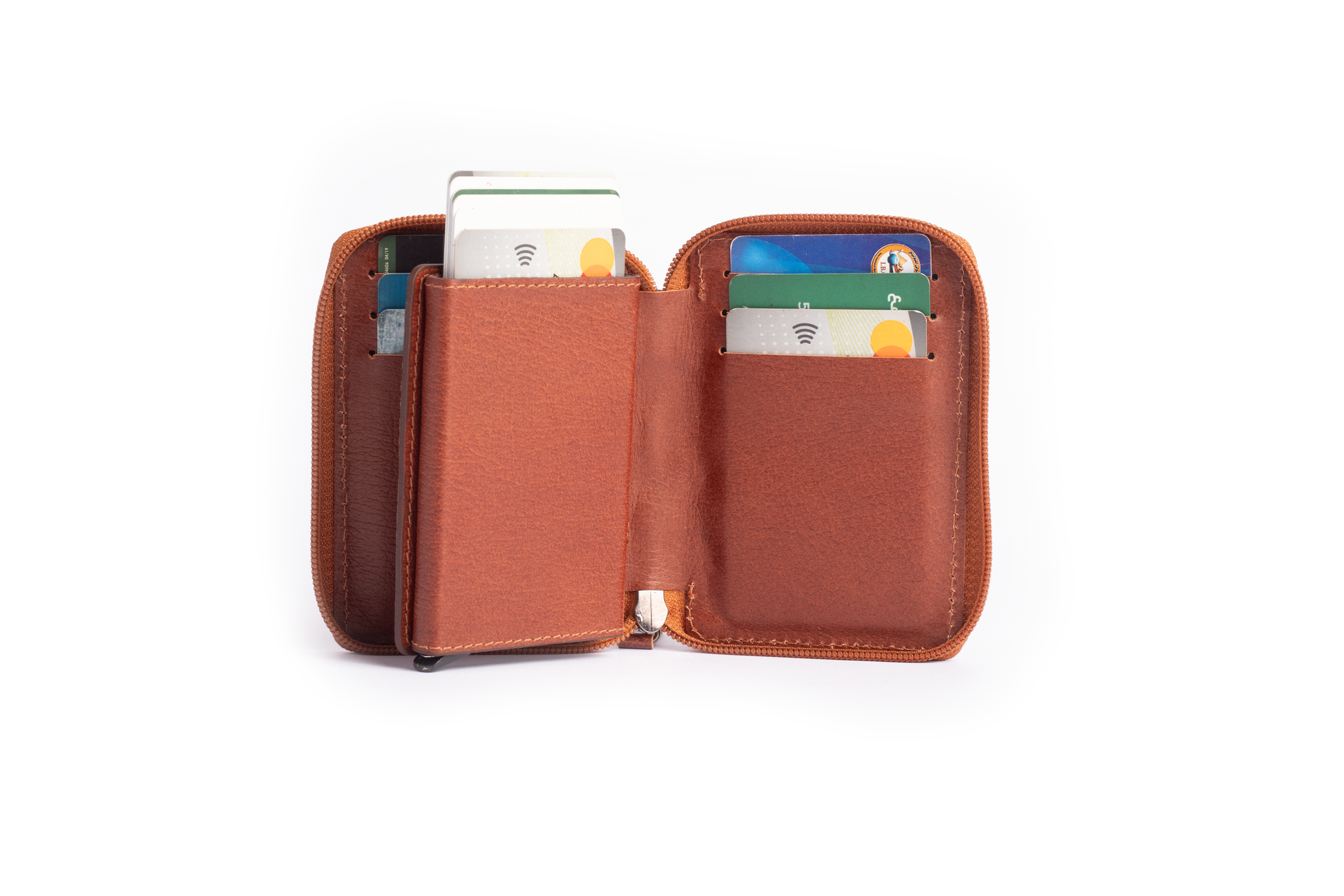 • Includes a metal compartment that securely holds up to 7 cards together with built-in RFID protection